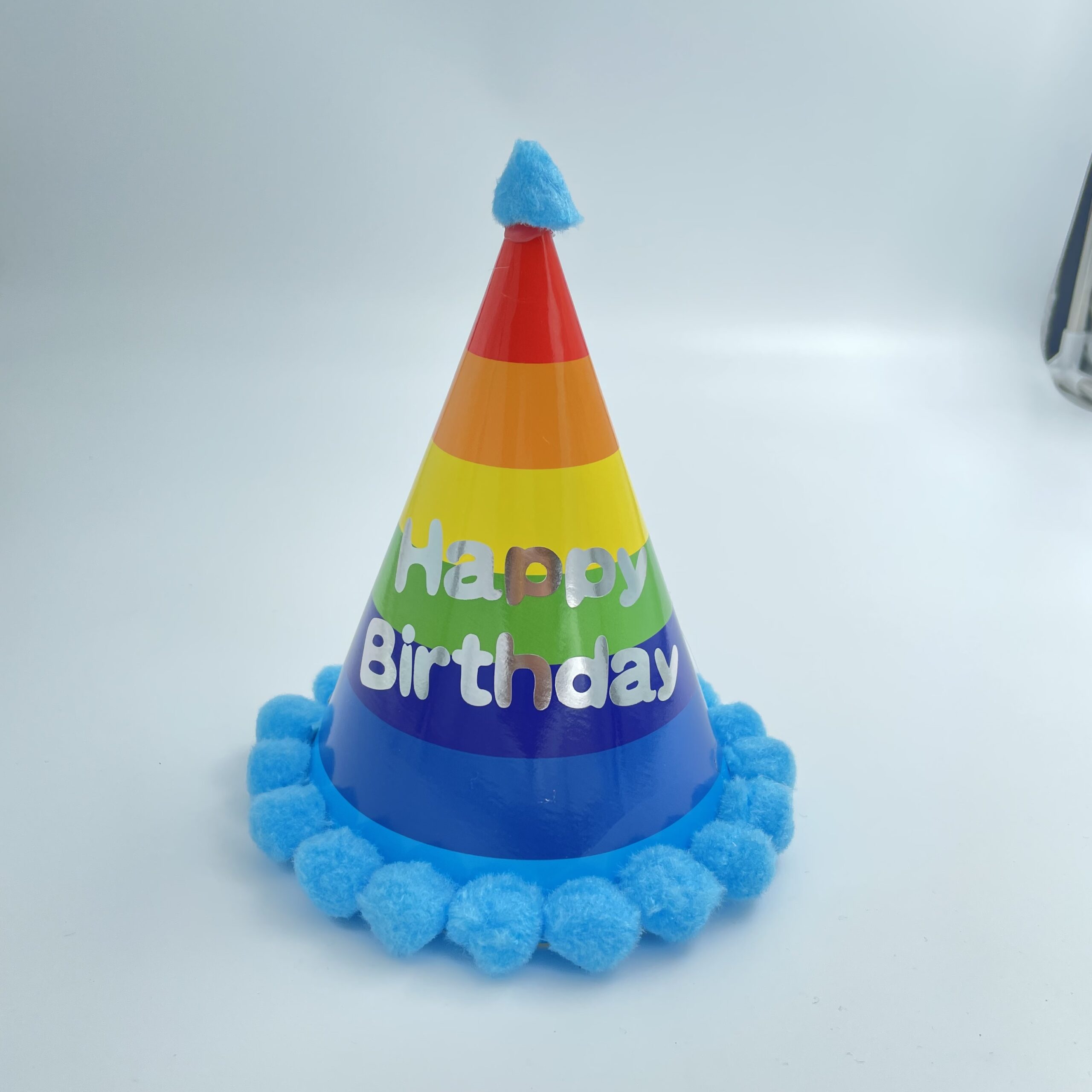 قبعة ملونة Happy Birthday مع بوم بومس ازرق