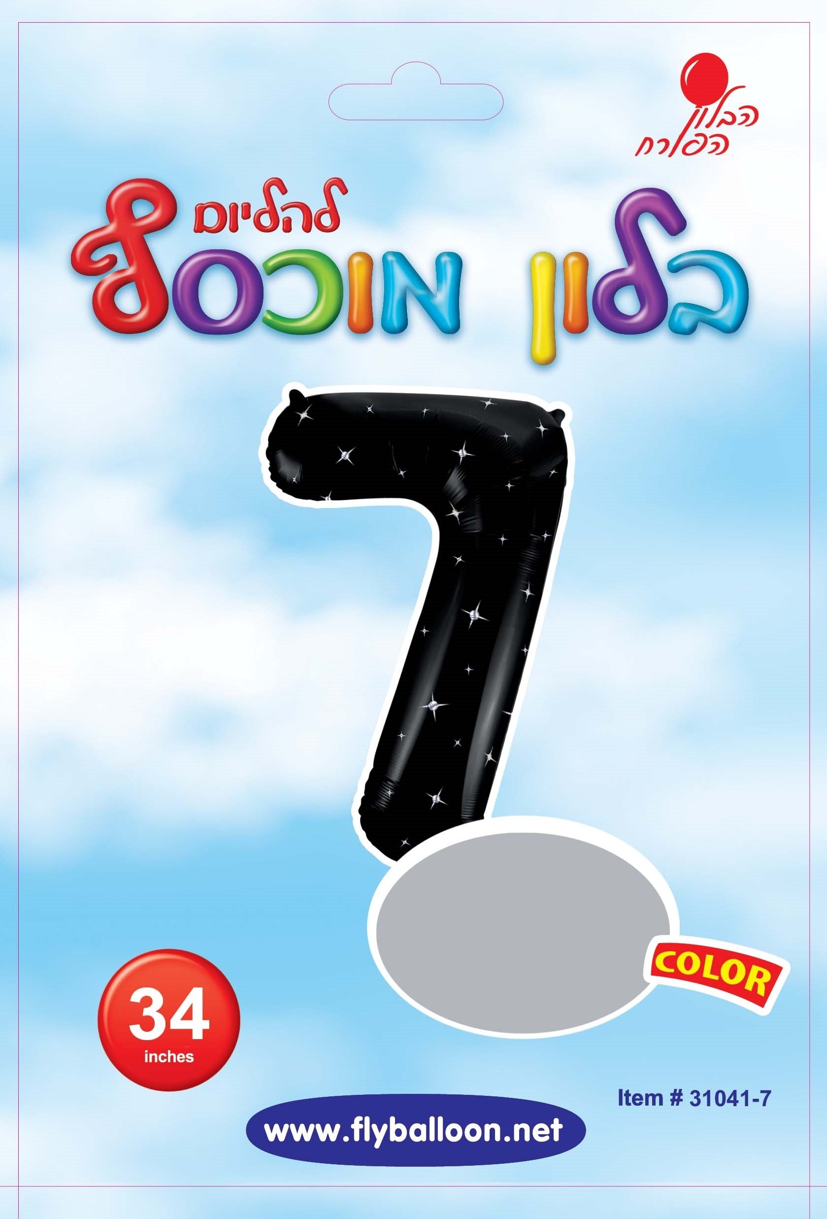 Black Number 7 – 34″ Mylar Balloon Silver Stars