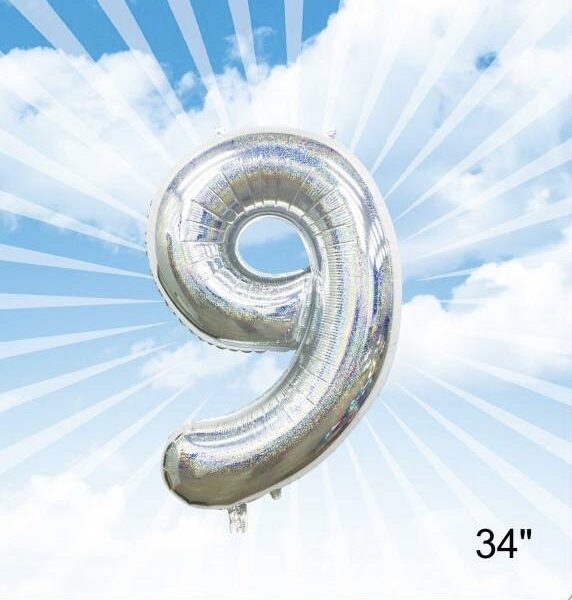 בלון מיילר 34″ ספרה 9 צבע כסף נצנץ