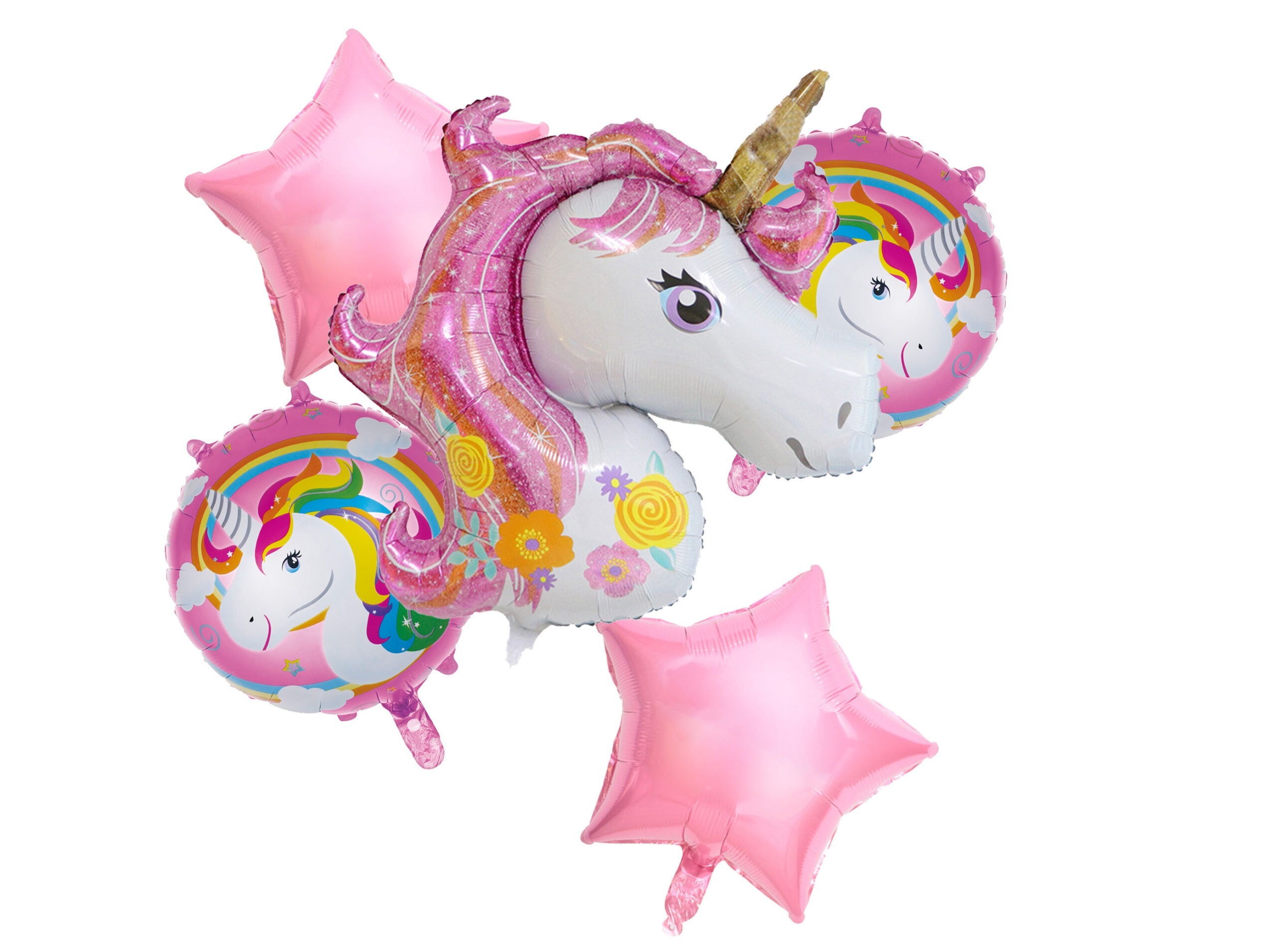זר בלונים מקסים חד קרן וכוכבים בצבע ורוד