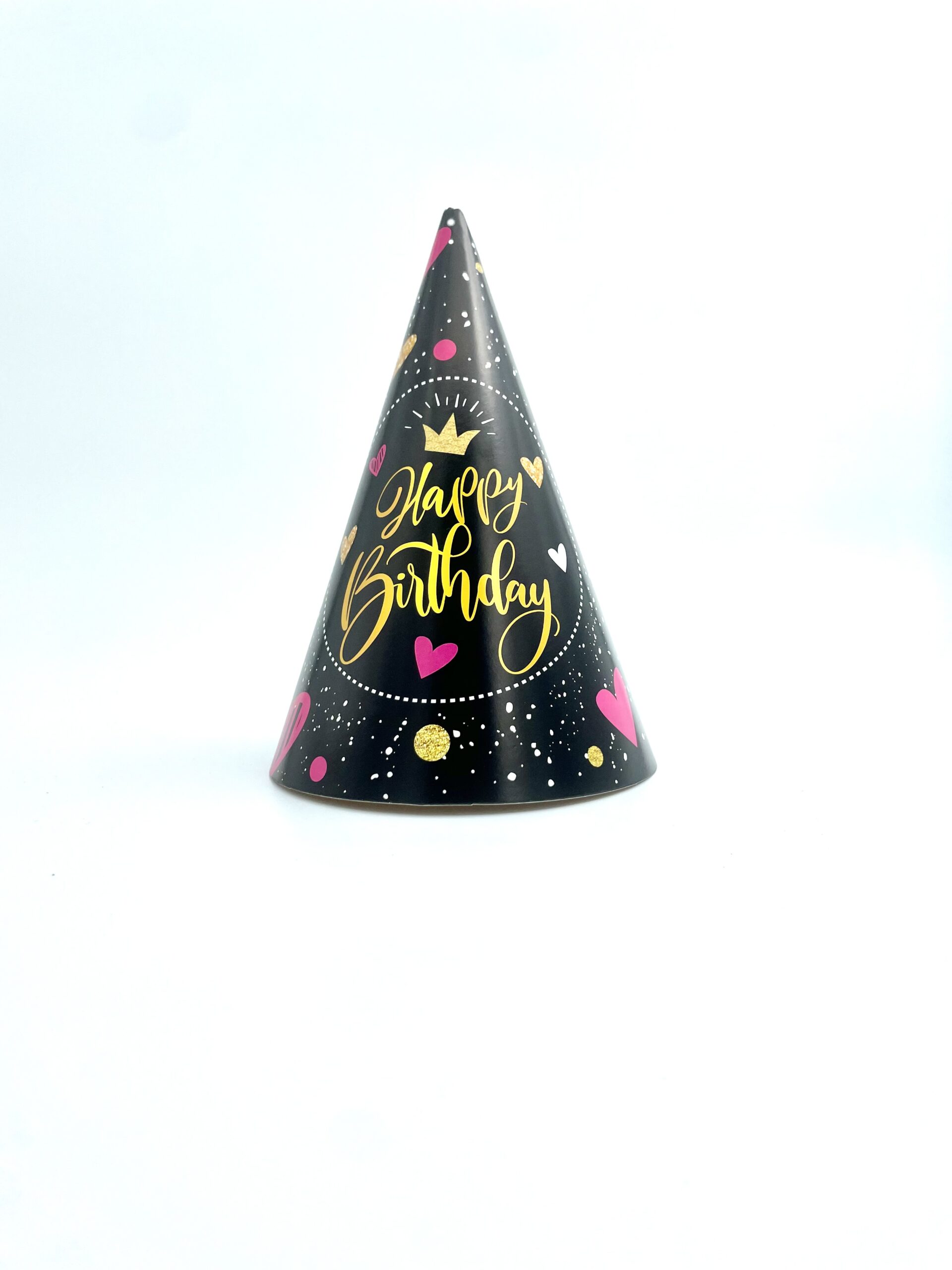 כובעים Happy birthday לבבות – ורוד וזהב ארוז 6 יח'