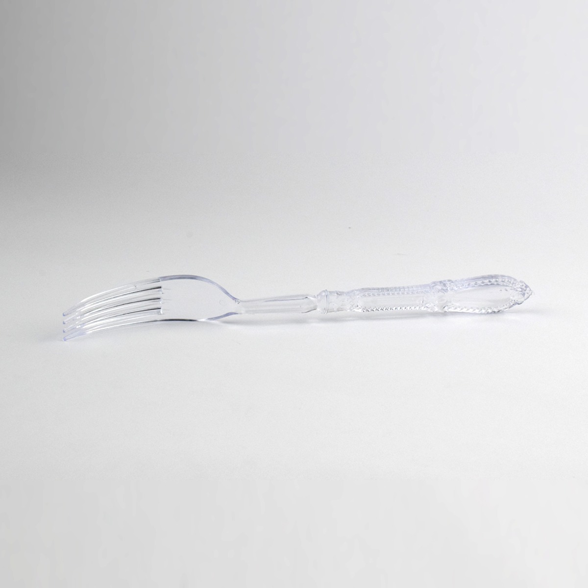 מזלג בצבע שקוף, עיצוב וינטג' עשוי מפלסטיק קשיח – 10 יח'