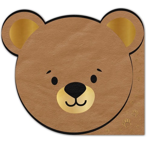 מפיות תלת שכבתי יום הולדת דובי חום – צורת דובי – ארוז 12 יח'