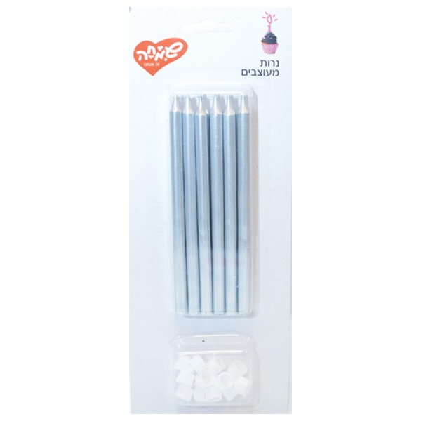 נרות יום הולדת ארוכים בצבע כסף מטאלי 12 יח'