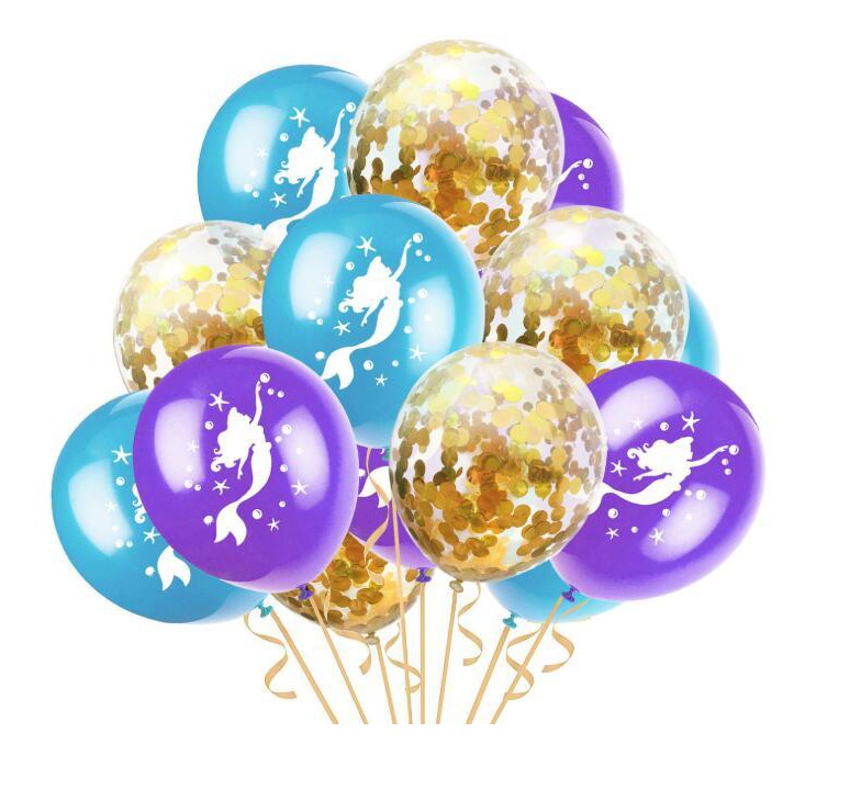 סט בלונים 15 יח' בת הים קונפטי זהב