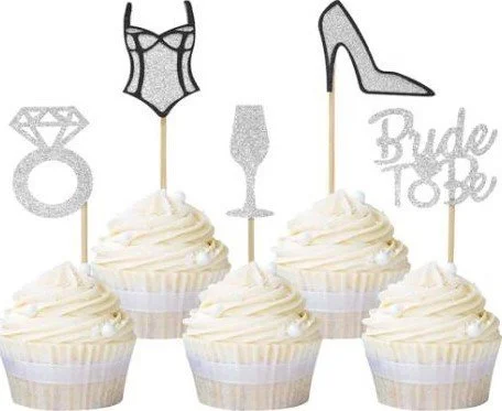 סט טופרים מסיבת רווקות כסף גליטר 5 יח'