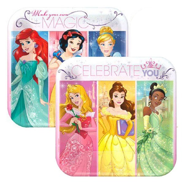 צלחות נייר מרובעות יומולדת נסיכות 20 ס"מ 8 יח'