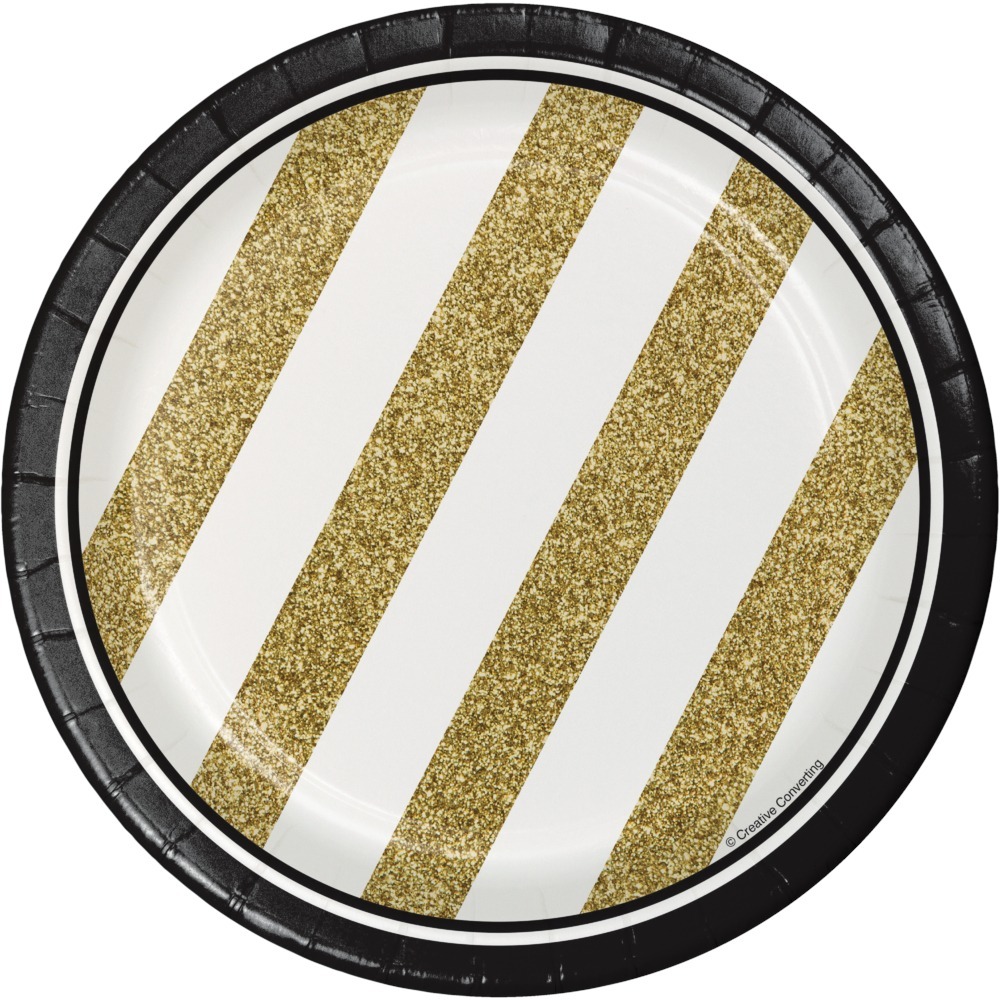צלחת בינונית 18 ס"מ יום הולדת שחור זהב – 8 יח'
