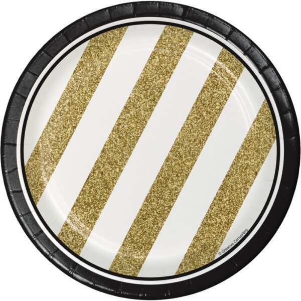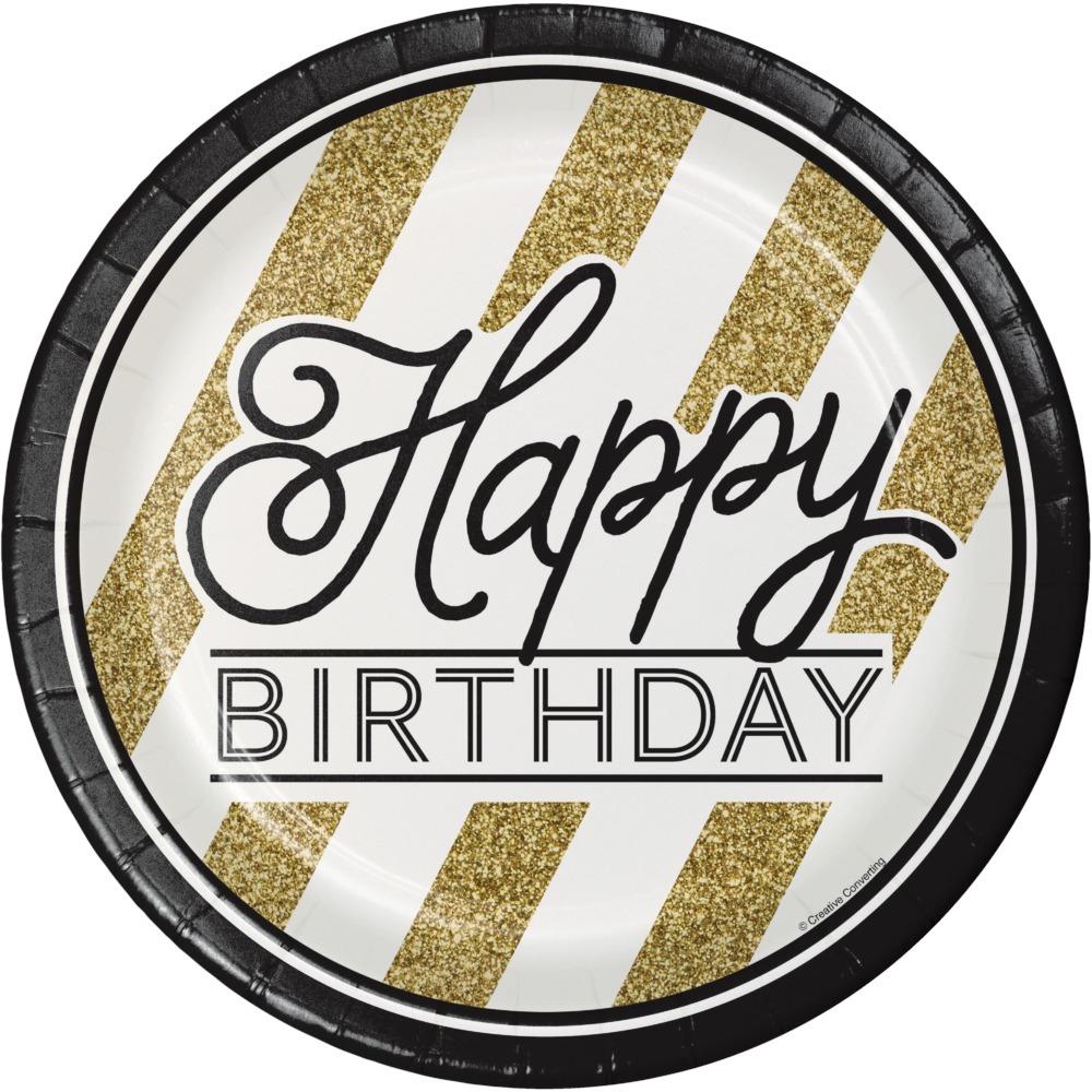 צלחת גדולה 23 ס"מ יום הולדת שחור זהב – 8 יח'