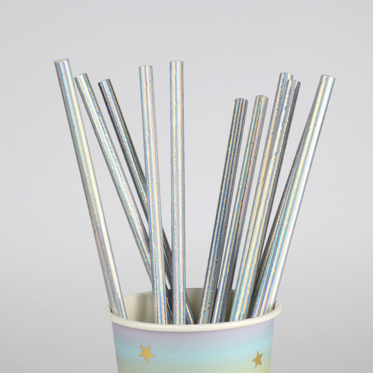 קש שתייה חד פעמי נייר צבע כסף מטאלי – 25 יח'