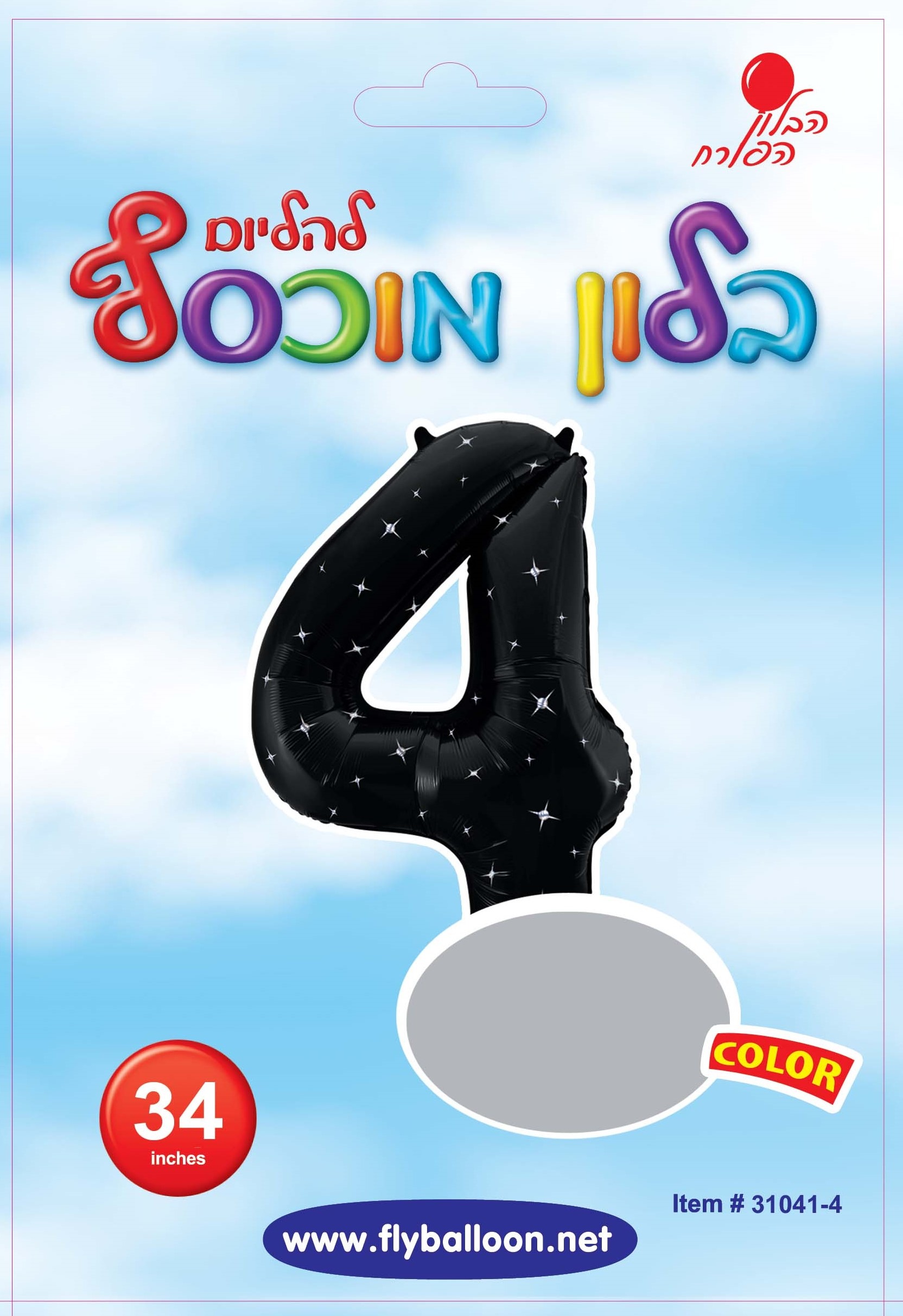 בלון מיילר 34" ספרה 4 צבע שחור כוכבים