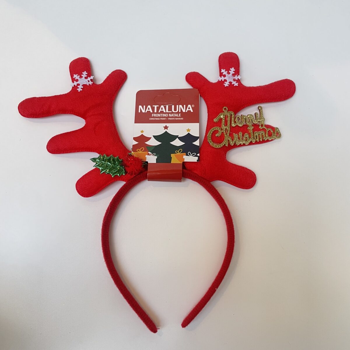 כתר אוזני אייל צבע אדום עם כיתוב זהב merry christmas
