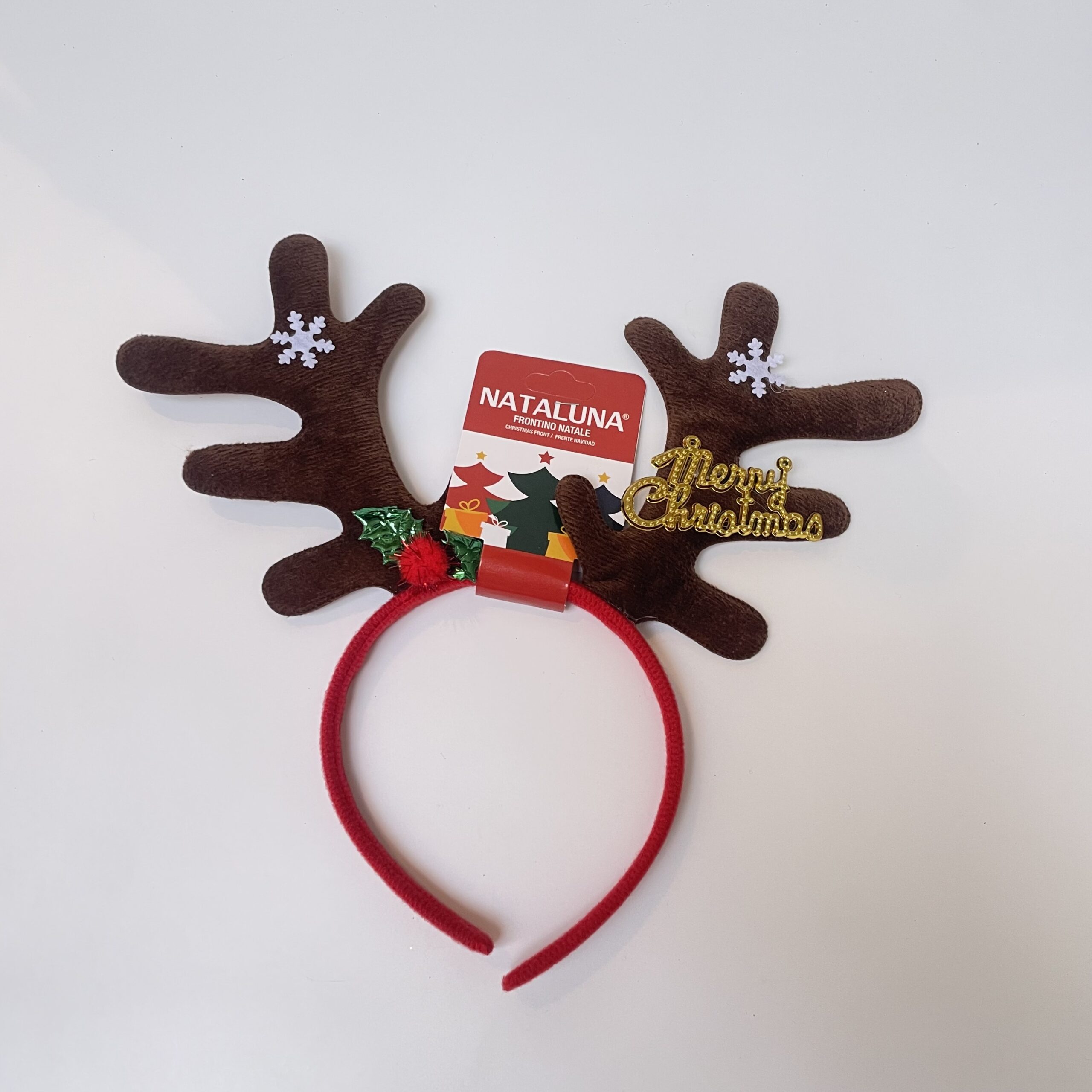 כתר אוזני אייל צבע חום עם כיתוב זהב merry christmas