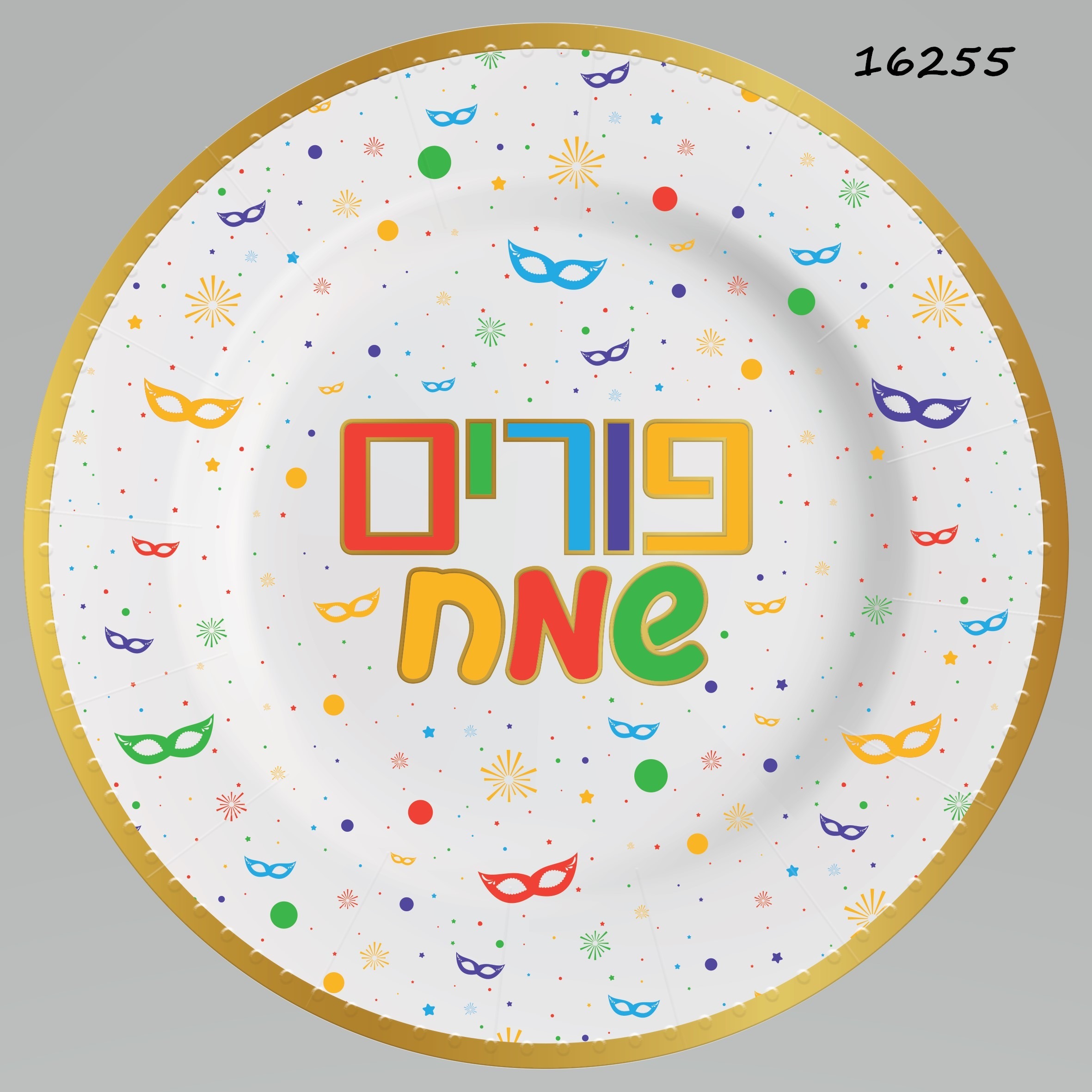 מגש עגול פורים שמח צבעוני – קוטר 33 ס"מ – ארוז 3 יח'