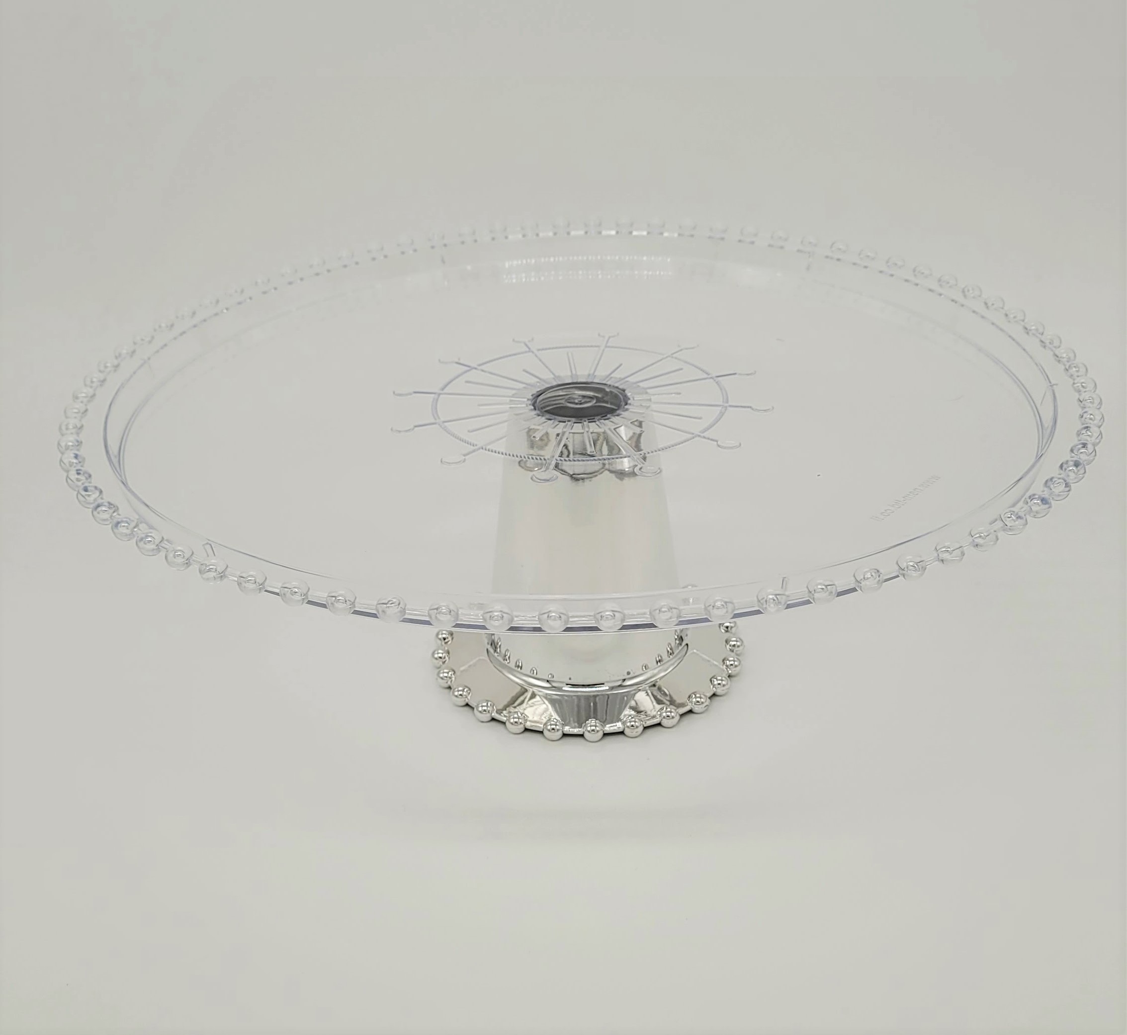 מעמד לעוגה שקוף עם רגל כסף קצרה