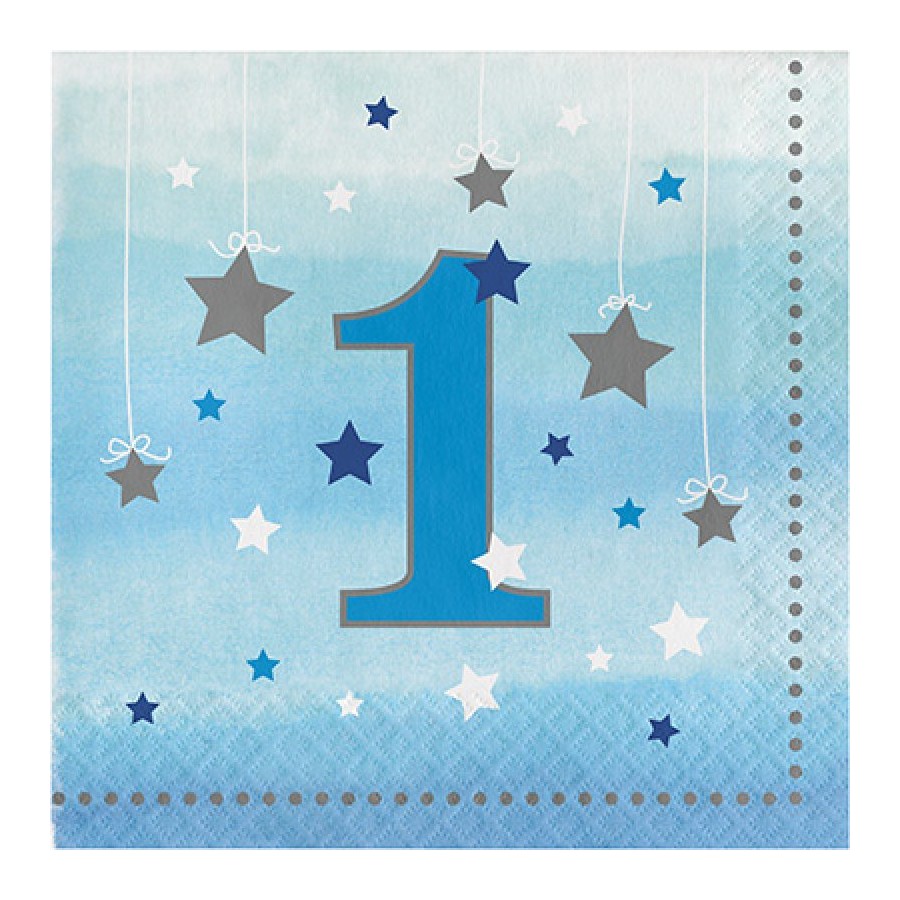 מפיות דו שכבתי יום הולדת שנה כוכבים – כחול – ארוז 16 יח'