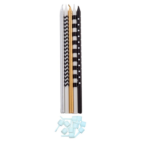 נרות ארוכים מיקס שחור זהב וכסף – ארוז 10 יח'