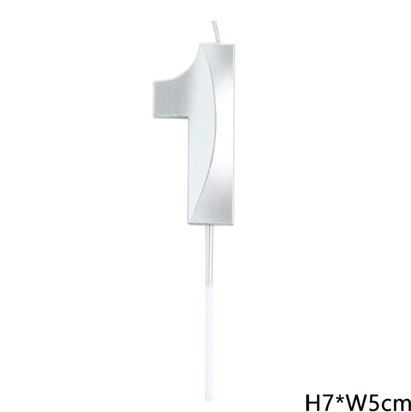 נר גדול ספרה 1 תלת ממד צבע כסף – 7 ס"מ