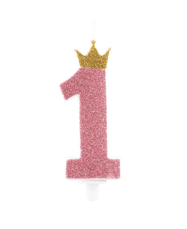 נר מספר 1 עם כתר ורוד גליטר
