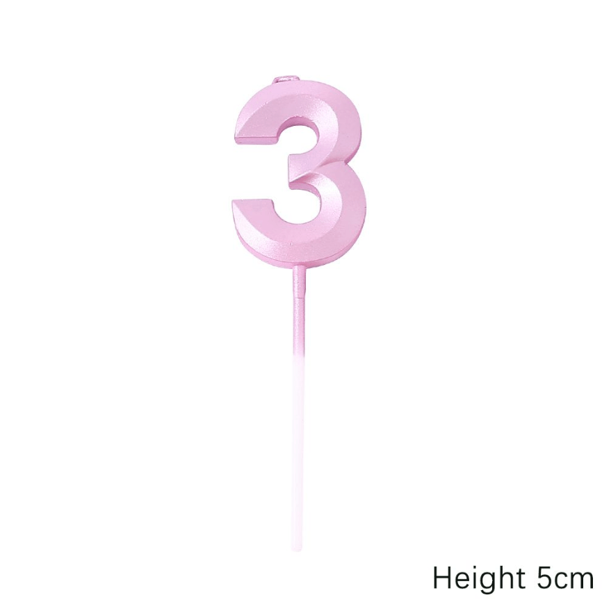 נר ספרה 3 תלת ממד צבע ורוד על מקל – 5 ס"מ