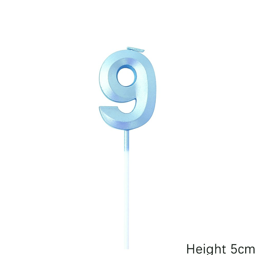נר ספרה 9 תלת ממד צבע תכלת על מקל – 5 ס"מ