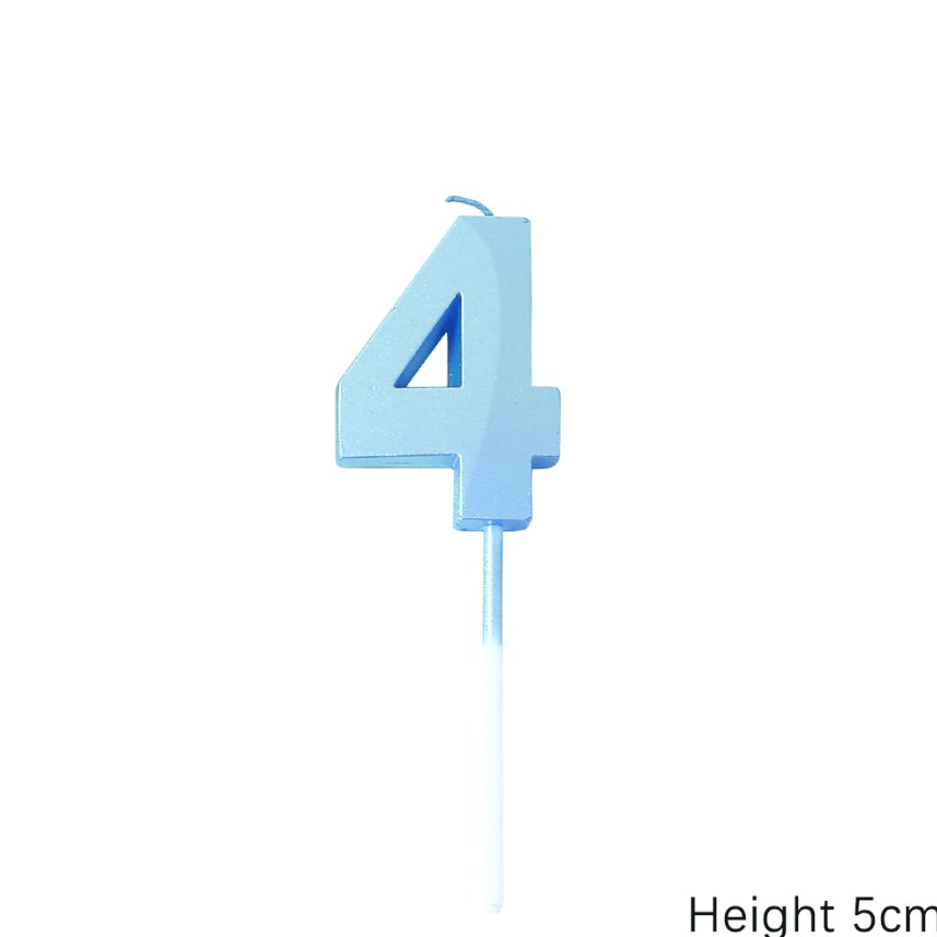 נר ספרה 4 תלת ממד צבע תכלת על מקל – 5 ס"מ
