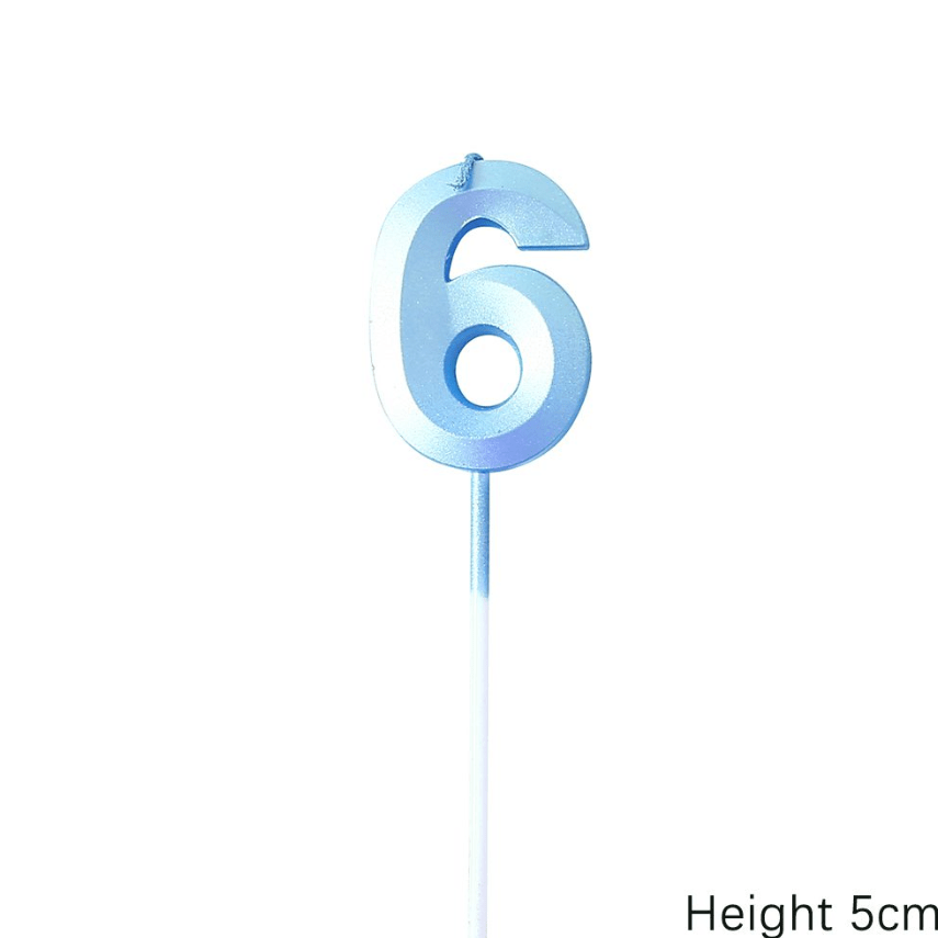 נר ספרה 6 תלת ממד צבע תכלת על מקל – 5 ס"מ