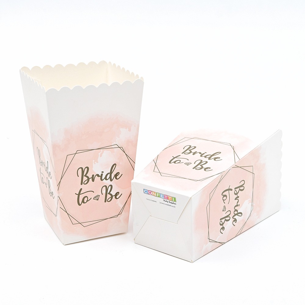 קופסאות פופקורן וחטיפים מסיבת רווקות – ארוז 6 יח' – לבן ורוד עם כיתוב זהב