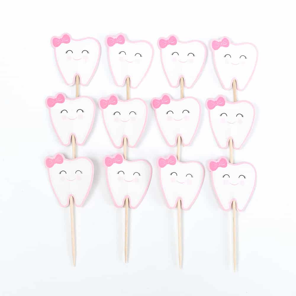 קיסמים לקאפקייק שן ראשונה ורוד ארוז 12 יח'