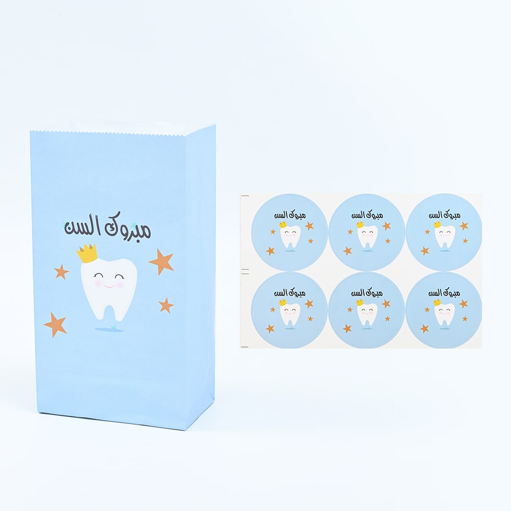 שקיות נייר + מדבקות סגירה שן ראשונה כחול – ארוז 6 יח’