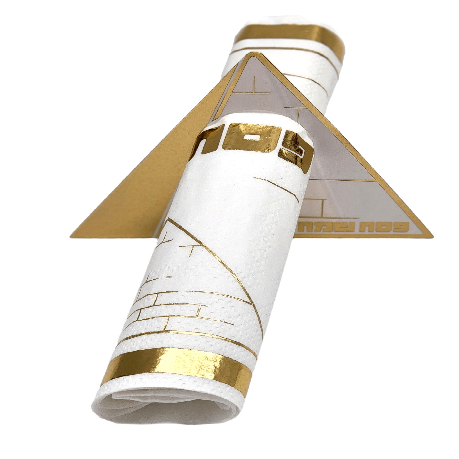10 מפיות + 10 חבקים פסח שמח לבן זהב